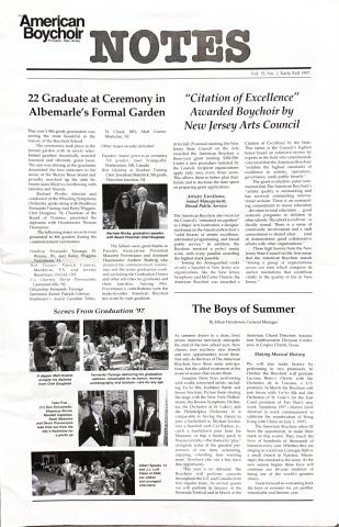 Entry Title "Notes" newsletter, Vol. 15, No. 1, Early Fall 1997 Date Fri, 08/01/1997 - 00:00 Archive Type Newsletters Photographs Address United States Archive Box Number ABS-011 Add new comment Your name Email Subject Comment About text formats Restricted HTML Allowed HTML tags: <a href hreflang> <em> <strong> <cite> <blockquote cite> <code> <ul type> <ol start type> <li> <dl> <dt> <dd> <h2 id> <h3 id> <h4 id> <h5 id> <h6 id> Lines and paragraphs break automatically. Web page addresses and email addresses turn into links automatically. CAPTCHA