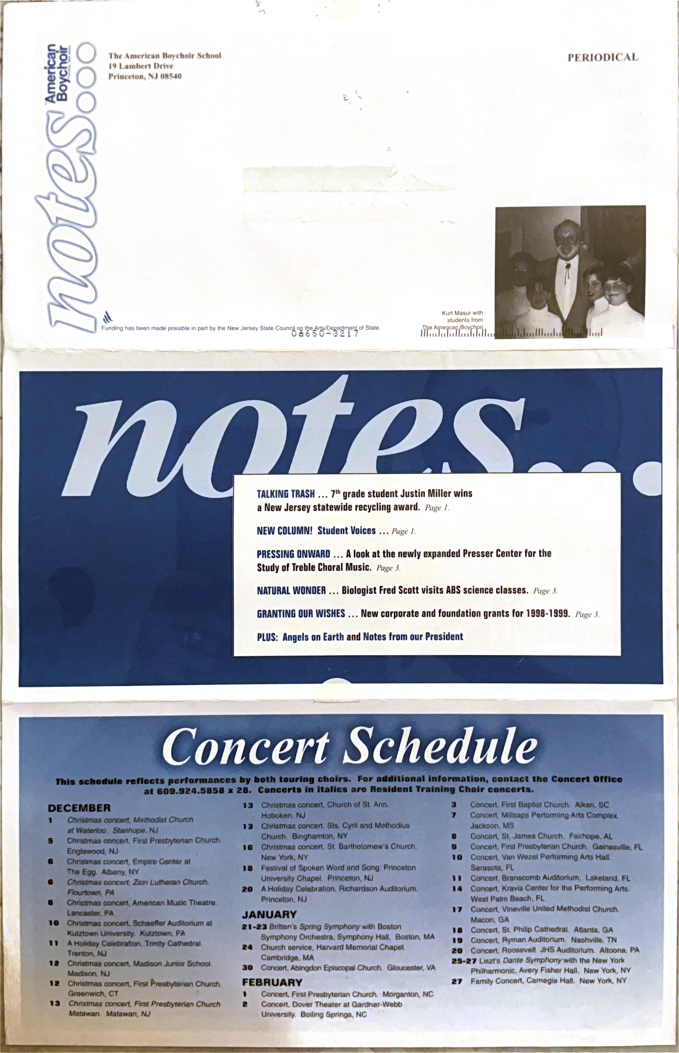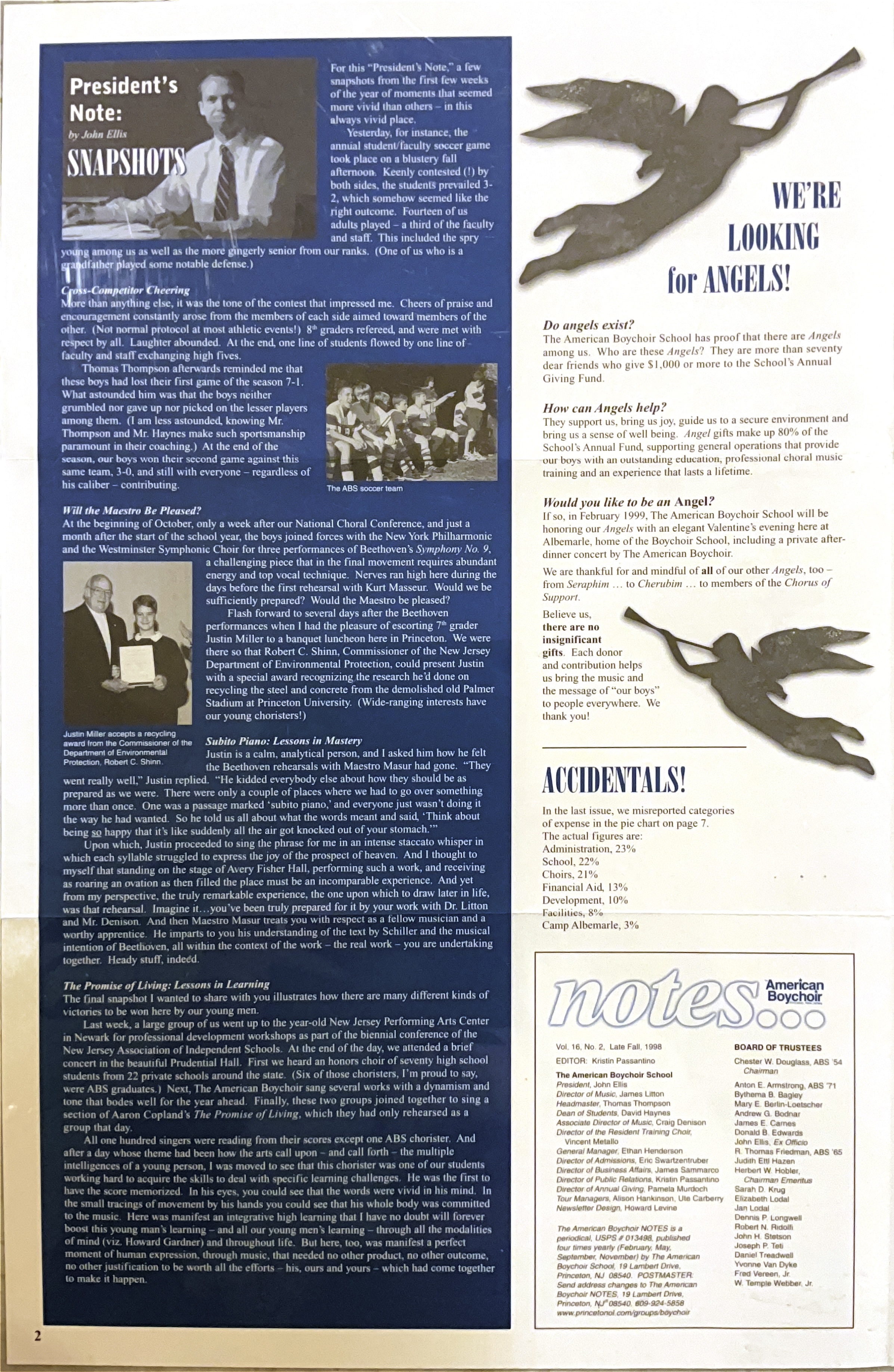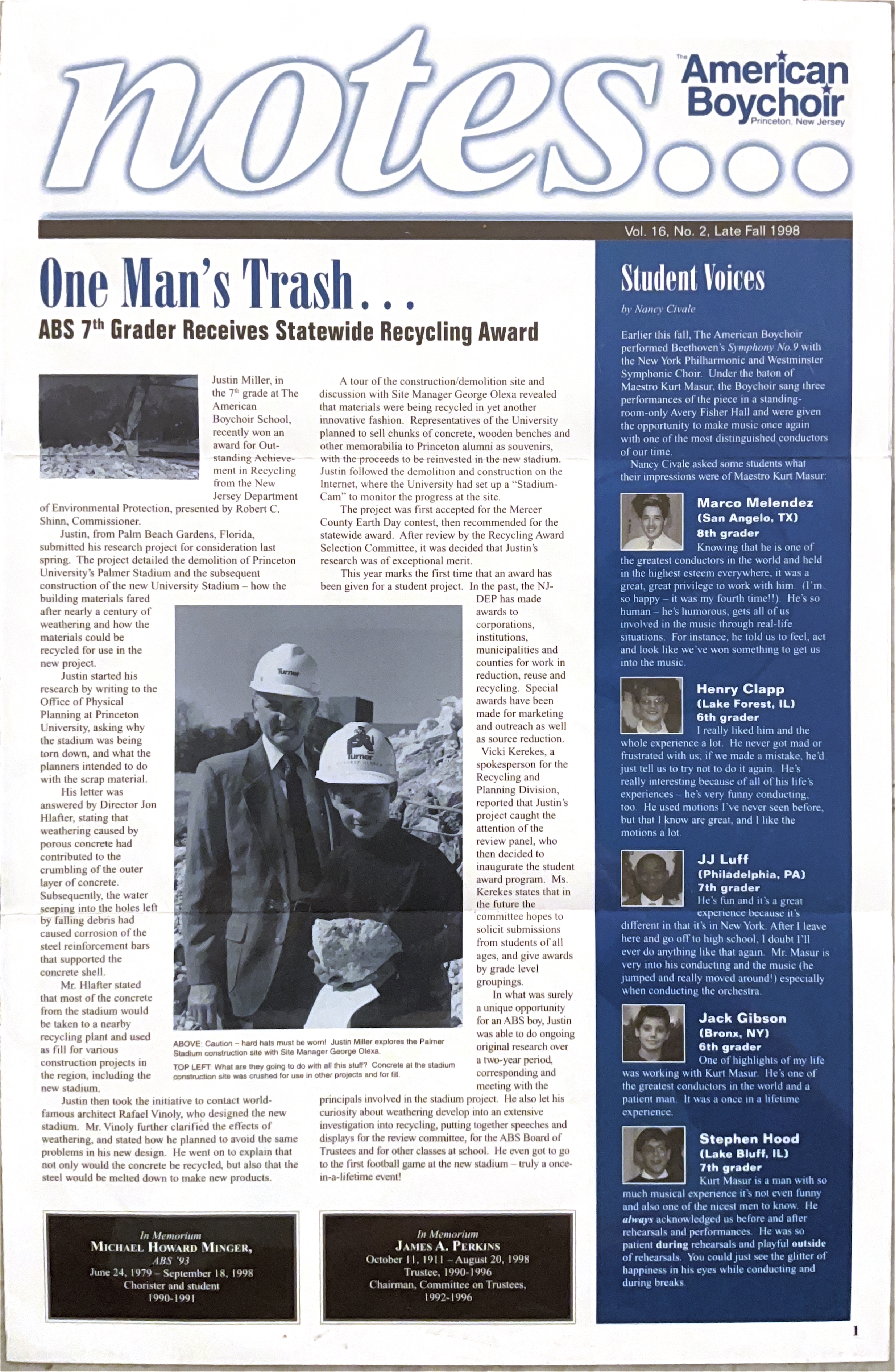 "Notes" newsletter, Vol. 16, No. 2, Late Fall 1998