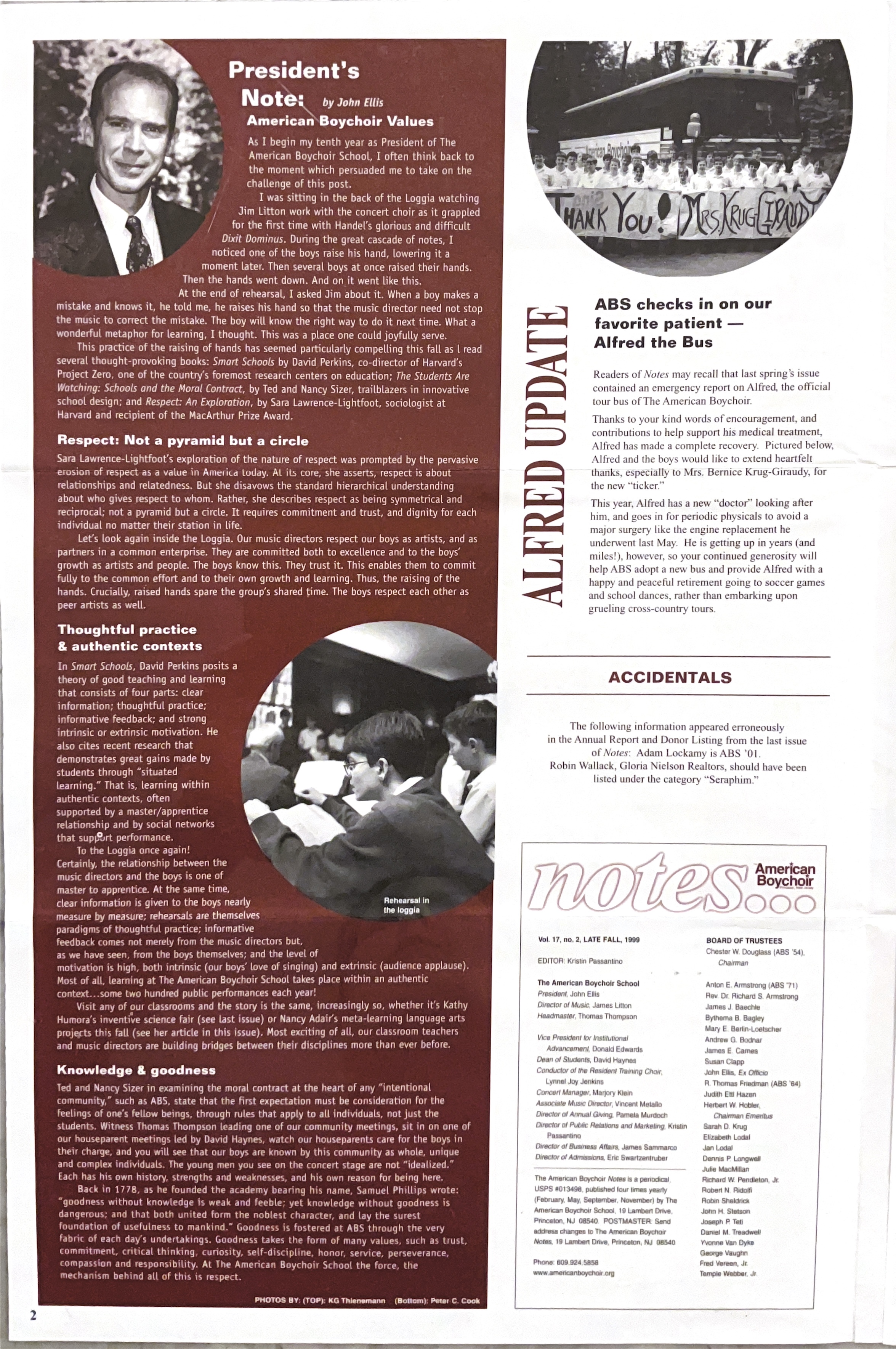 Entry Title "Notes" newsletter, Vol. 17, No. 2, Late Fall 1999 Date Mon, 11/01/1999 - 00:00 Archive Type Newsletters Photographs Address United States Archive Box Number ABS-011 Add new comment Your name Email Subject Comment About text formats Restricted HTML Allowed HTML tags: <a href hreflang> <em> <strong> <cite> <blockquote cite> <code> <ul type> <ol start type> <li> <dl> <dt> <dd> <h2 id> <h3 id> <h4 id> <h5 id> <h6 id> Lines and paragraphs break automatically. Web page addresses and email addresses turn into links automatically. CAPTCHA