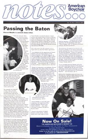Entry Title "Notes" newsletter, Vol. 18, No. 3, Winter 2001 Date Mon, 01/01/2001 - 00:00 Archive Type Newsletters Photographs Address United States Archive Box Number ABS-011 Add new comment Your name Email Subject Comment About text formats Restricted HTML Allowed HTML tags: <a href hreflang> <em> <strong> <cite> <blockquote cite> <code> <ul type> <ol start type> <li> <dl> <dt> <dd> <h2 id> <h3 id> <h4 id> <h5 id> <h6 id> Lines and paragraphs break automatically. Web page addresses and email addresses turn into links automatically. CAPTCHA