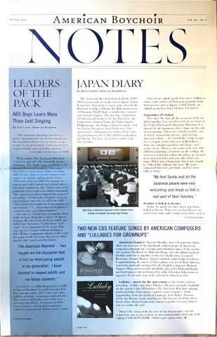 Entry Title "Notes" newsletter, Vol. 20, No. 3, Winter 2003 Date Wed, 01/01/2003 - 00:00 Archive Type Newsletters Photographs Address United States Archive Box Number ABS-011 Add new comment Your name Email Subject Comment About text formats Restricted HTML Allowed HTML tags: <a href hreflang> <em> <strong> <cite> <blockquote cite> <code> <ul type> <ol start type> <li> <dl> <dt> <dd> <h2 id> <h3 id> <h4 id> <h5 id> <h6 id> Lines and paragraphs break automatically. Web page addresses and email addresses turn into links automatically. CAPTCHA