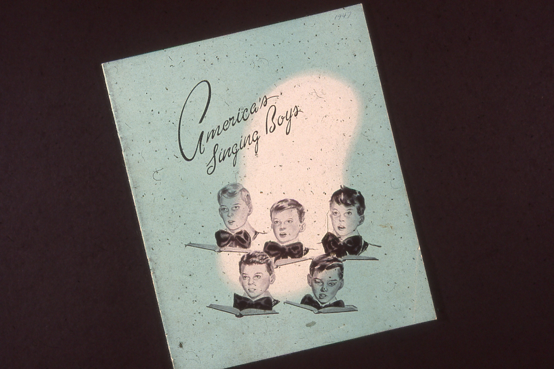 Entry Title America's Singing Boys Archive Type Photo Photographs Description no slide number or date Archive Box Number ABS-011 Add new comment Your name Email Subject Comment About text formats Restricted HTML Allowed HTML tags: <a href hreflang> <em> <strong> <cite> <blockquote cite> <code> <ul type> <ol start type> <li> <dl> <dt> <dd> <h2 id> <h3 id> <h4 id> <h5 id> <h6 id> Lines and paragraphs break automatically. Web page addresses and email addresses turn into links automatically. CAPTCHA