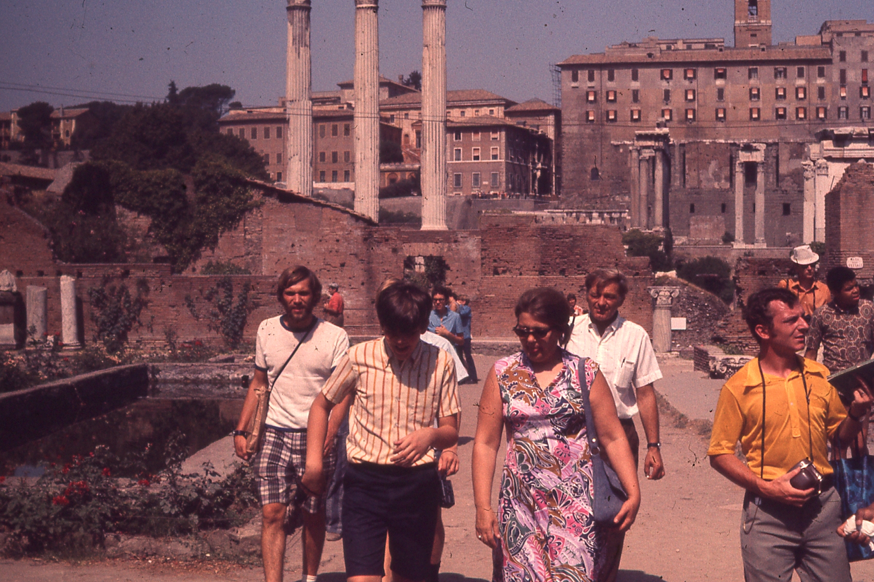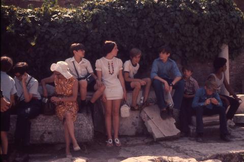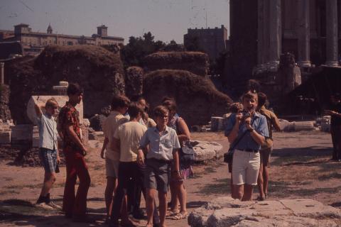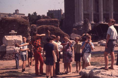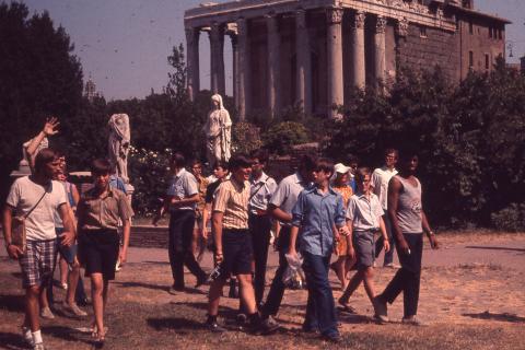 The boys visiting the Temple of Portunus in Rome, Italy