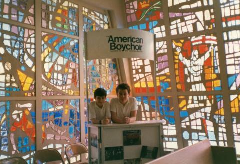Entry Title Boys at an ABS information stand; stained glass walls behind them Archive Type Photo Photographs Archive Box Number ABS-012 Add new comment Your name Email Subject Comment About text formats Restricted HTML Allowed HTML tags: <a href hreflang> <em> <strong> <cite> <blockquote cite> <code> <ul type> <ol start type> <li> <dl> <dt> <dd> <h2 id> <h3 id> <h4 id> <h5 id> <h6 id> Lines and paragraphs break automatically. Web page addresses and email addresses turn into links automatically. CAPTCHA