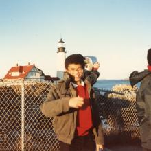 Boys visiting Portland Head Lighthouse in Cape Elizabeth, ME