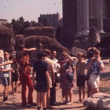 The boys visiting the Temple of Portunus in Rome, Italy
