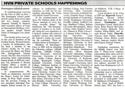 Entry Title HVN Private Schools Happenings Date Thu, 06/12/2003 - 00:00 Archive Type Article Photographs Address Hopewell Valley News Hopewell, NJ 08525 United States Archive Box Number ABS-011 Add new comment Your name Email Subject Comment About text formats Restricted HTML Allowed HTML tags: <a href hreflang> <em> <strong> <cite> <blockquote cite> <code> <ul type> <ol start type> <li> <dl> <dt> <dd> <h2 id> <h3 id> <h4 id> <h5 id> <h6 id> Lines and paragraphs break automatically. Web page addresses and email addresses turn into links automatically. CAPTCHA