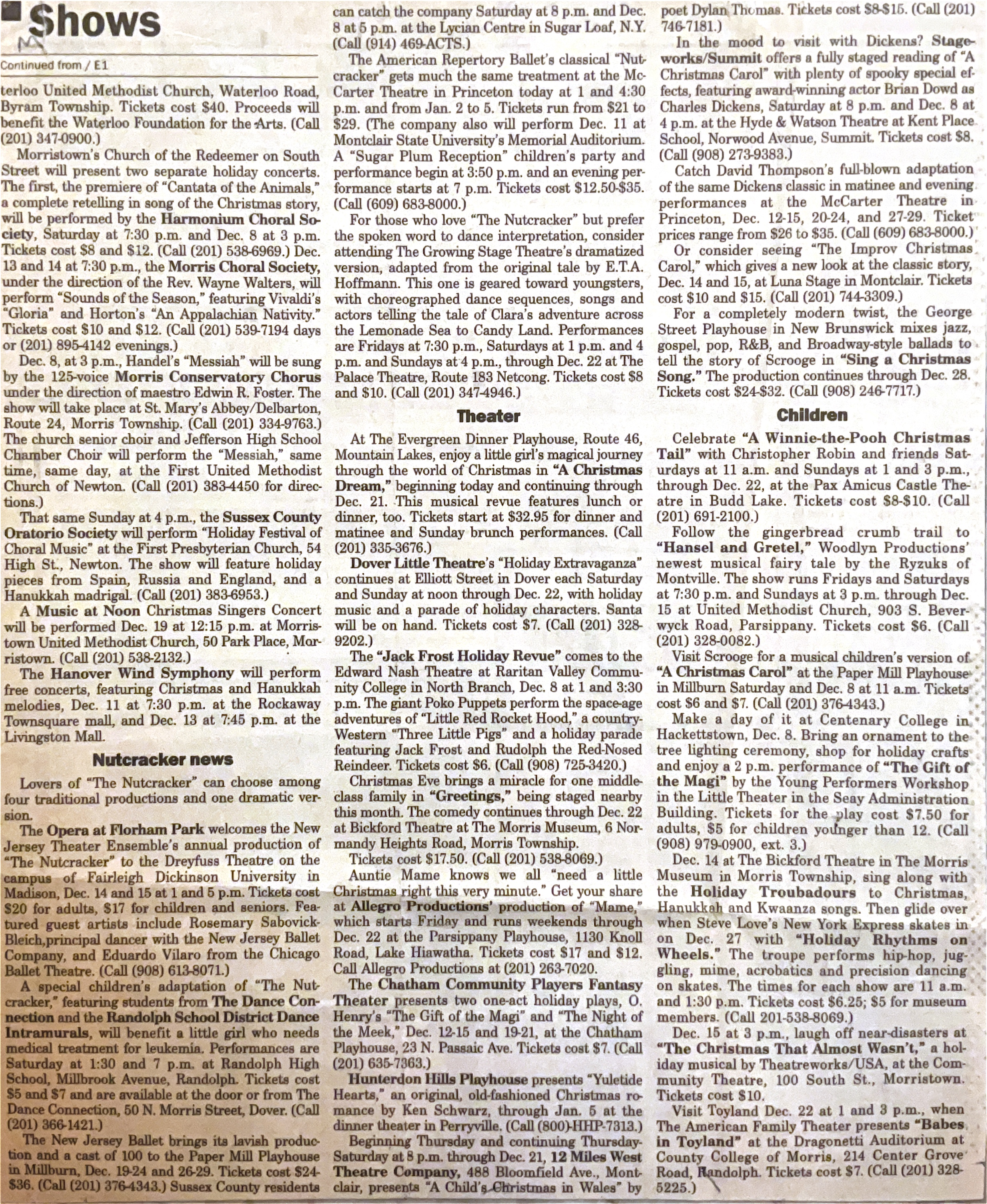 Entry Title Let It Show, Let It Show, Let It Show Date Sun, 12/01/1996 - 00:00 Archive Type Article Performance Photographs Address Daily Record Morristown, NJ United States Archive Box Number ABS-011 Add new comment Your name Email Subject Comment About text formats Restricted HTML Allowed HTML tags: <a href hreflang> <em> <strong> <cite> <blockquote cite> <code> <ul type> <ol start type> <li> <dl> <dt> <dd> <h2 id> <h3 id> <h4 id> <h5 id> <h6 id> Lines and paragraphs break automatically. Web page addresses and email addresses turn into links automatically. CAPTCHA