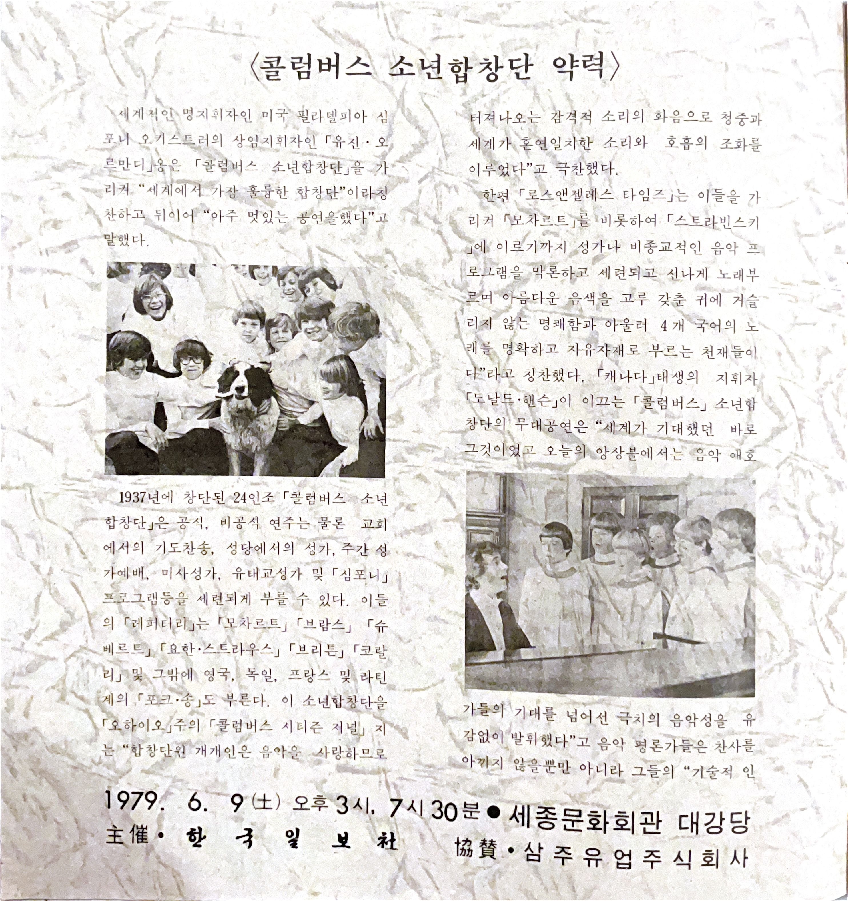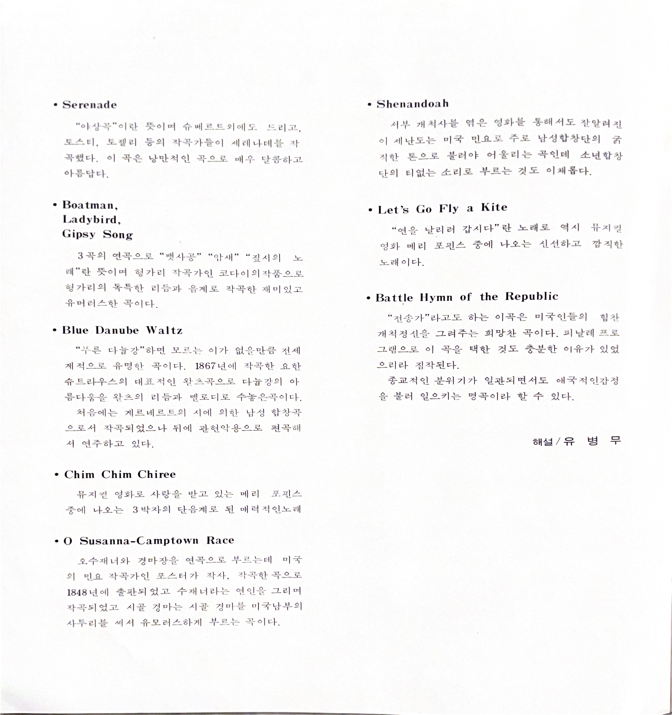 Entry Title Concert program from performance in Korea Date Sat, 12/01/0001 - 00:00 Archive Type Concert Programs Performance Photographs Address South Korea Archive Box Number ABS-011 Add new comment Your name Email Subject Comment About text formats Restricted HTML Allowed HTML tags: <a href hreflang> <em> <strong> <cite> <blockquote cite> <code> <ul type> <ol start type> <li> <dl> <dt> <dd> <h2 id> <h3 id> <h4 id> <h5 id> <h6 id> Lines and paragraphs break automatically. Web page addresses and email addresses turn into links automatically. CAPTCHA