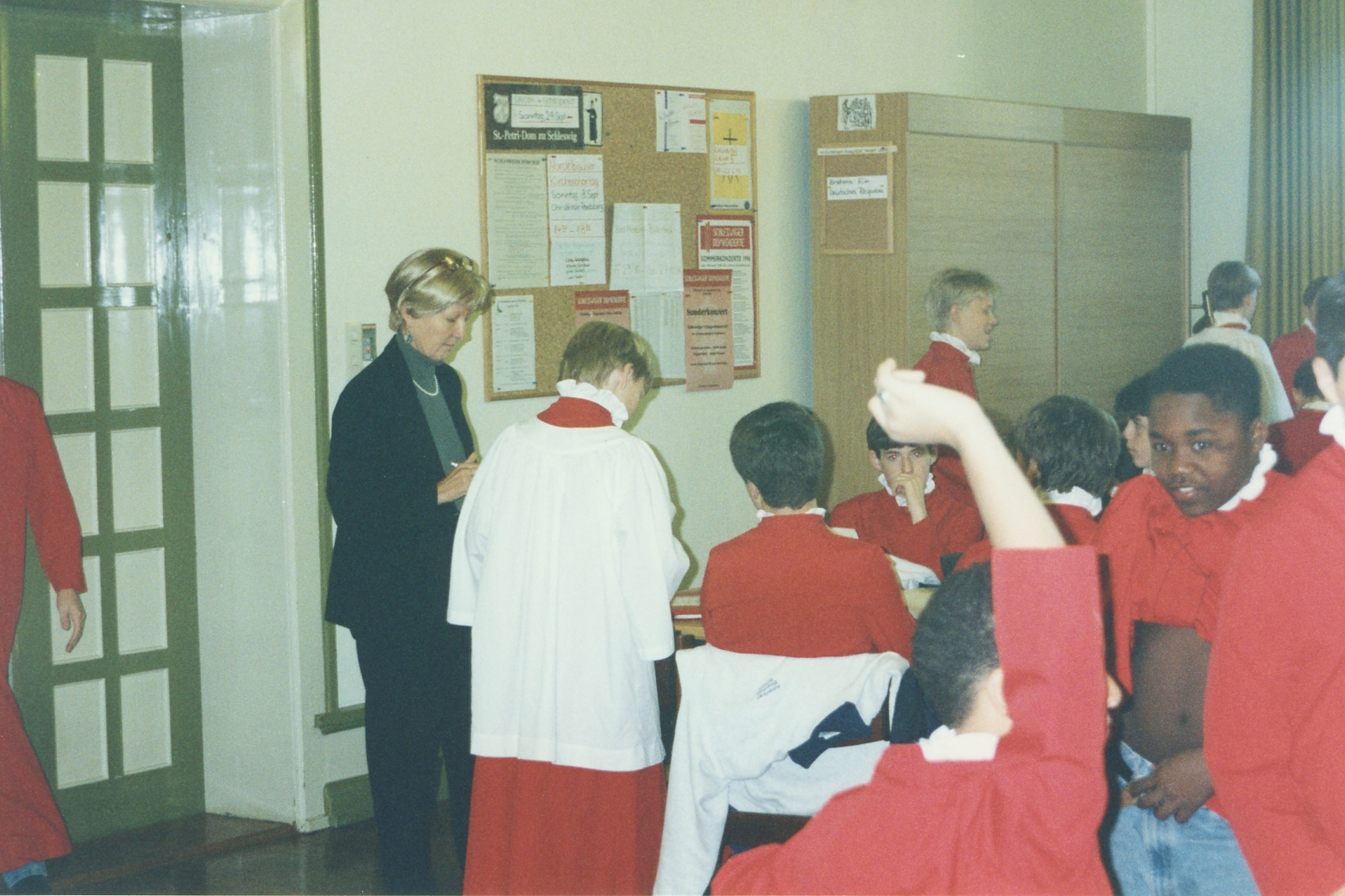 Entry Title Boys, wearing vestments, backstage along with Alison Hankinson Date Sun, 09/01/1996 - 00:00 Archive Type Photo Photographs Relevant Parties Alison Hankinson, Tour Manager Archive Box Number ABS-012 Add new comment Your name Email Subject Comment About text formats Restricted HTML Allowed HTML tags: <a href hreflang> <em> <strong> <cite> <blockquote cite> <code> <ul type> <ol start type> <li> <dl> <dt> <dd> <h2 id> <h3 id> <h4 id> <h5 id> <h6 id> Lines and paragraphs break automatically. Web page addresses and email addresses turn into links automatically. CAPTCHA