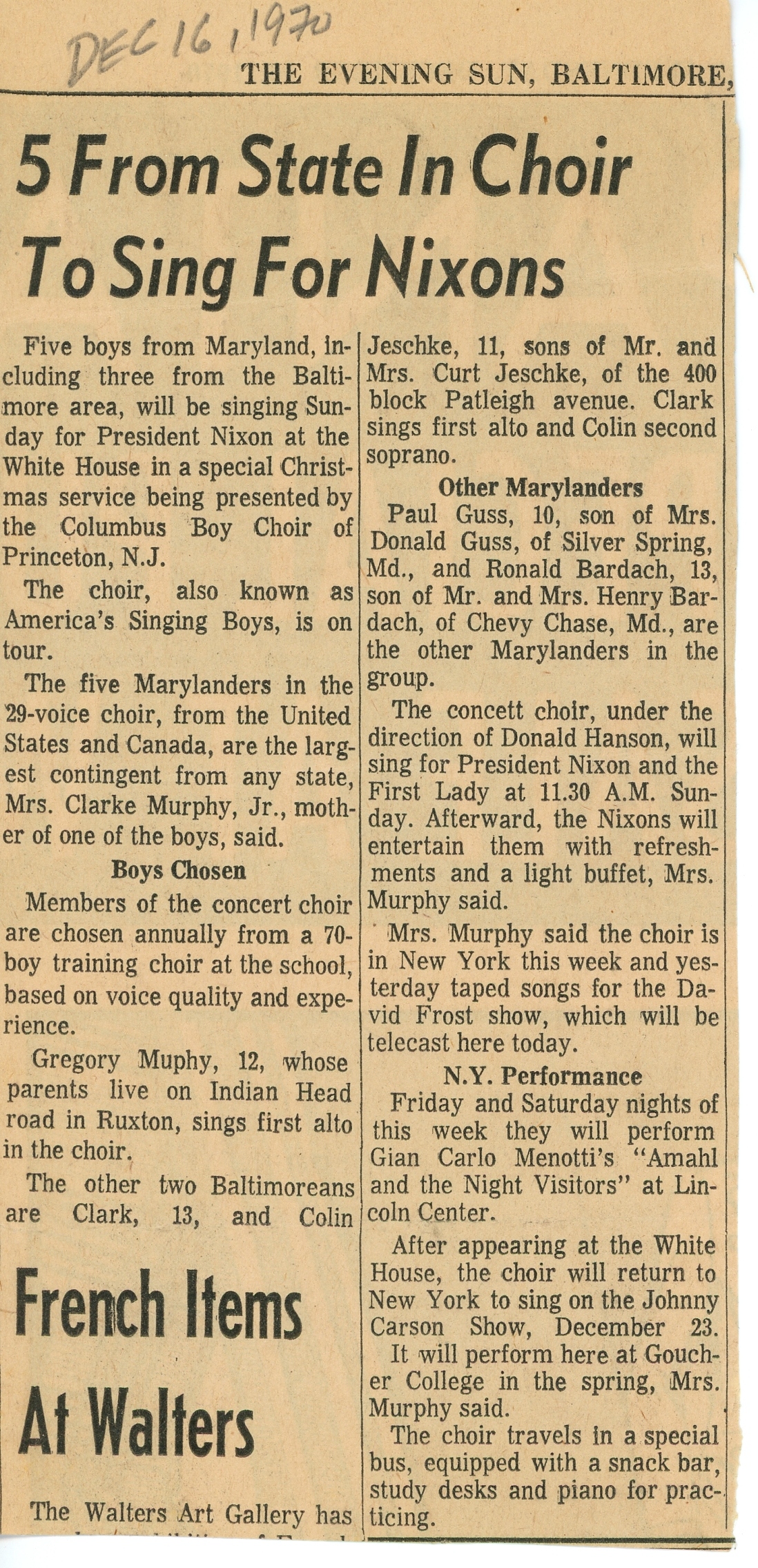 5 From State In Choir To Sing For Nixons