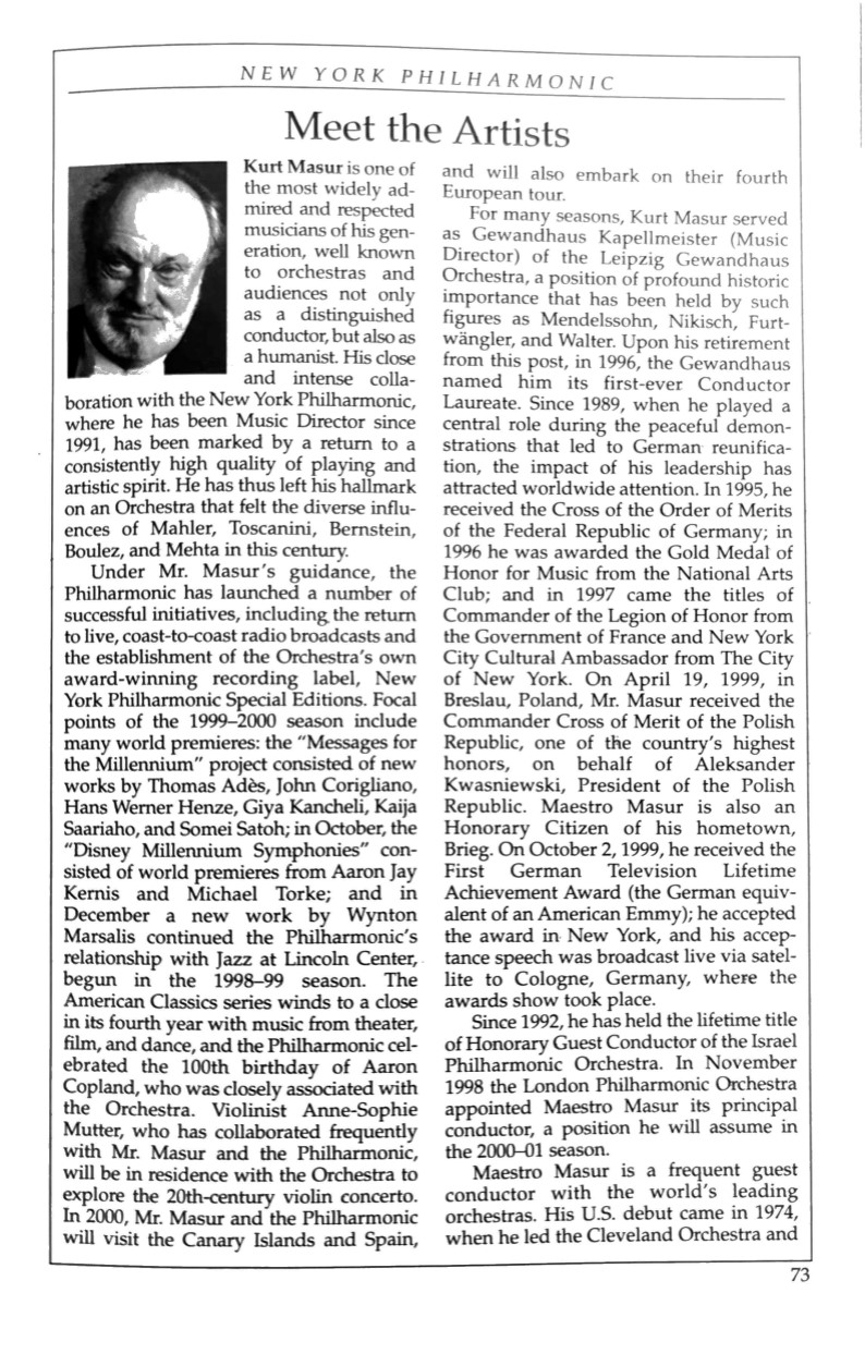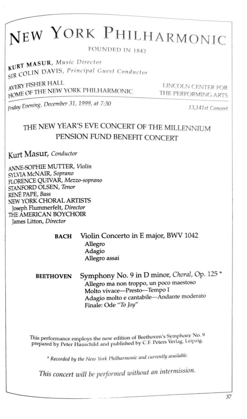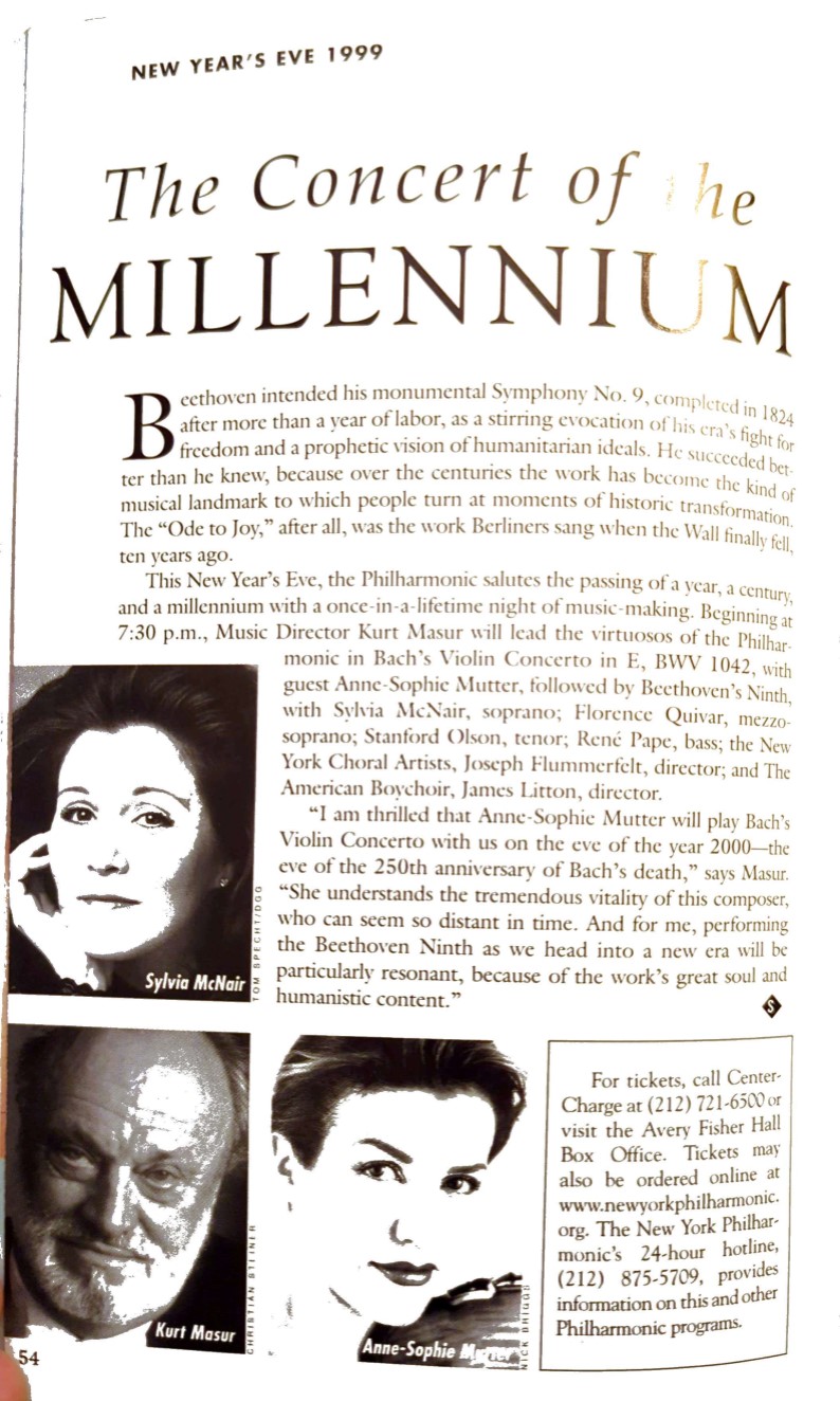 Concert of the Millennium 1999-2000 concert program