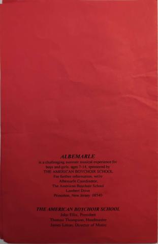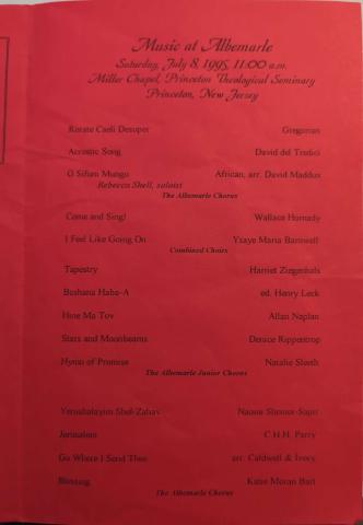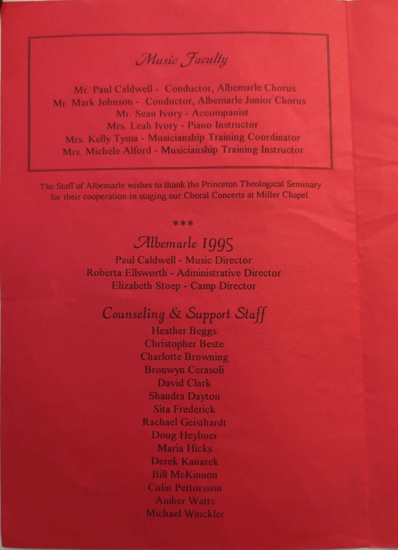 Music at Camp Albemarle concert program
