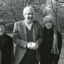Dr. Litton with two boys wearing winter coats