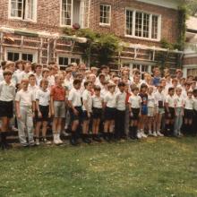 Large group of children gathered on the patio of Albemarle mansion