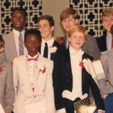 Boys wearing dress clothes with boutonnieres