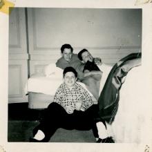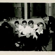 Contact print of boys rehearsing in the Loggia with Dr. James Litton