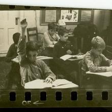 Contact print of Dr. James Litton directing boys wearing turtlenecks