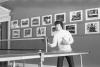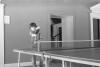 Boy with dark hair playing ping pong