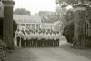 Group of boys wearing white turtlenecks standing at the front entrance of Albemarle Estate
