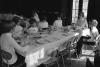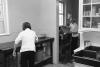 L-R: Glenn Goida, Bill Cromwell, Michael Jacobus, Carl Johnson,& Wayne Martz playing piano