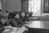 Boys wearing dark turtlenecks sitting at desks in a classroom