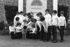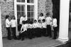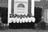 Group of boys wearing turtlenecks gathered on portico of Albemarle mansion