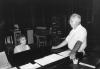 Woman seated at piano; man with gray hair standing