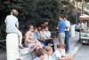 Group gathered on the side of a city street
