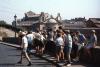Boys gathered beside a city street