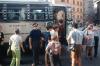 Boys boarding a bus in Rome,Italy
