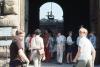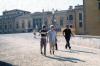 Boys walking with Pitti Palace in the background; Florence, Italy