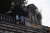 Boys standing in an archway of a building