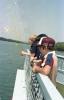 Boy with blonde hair standing on deck of the Hiawatha Riverboat; Pennsylvania