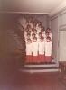 Boys wearing vestments standing in a group on staircase in Albemarle mansion