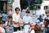 Boys standing at an outdoor seating area; Labeled "Europe 1973"