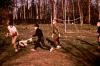 Boys outside tossing balls to each other