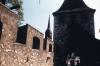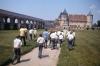 Boys wearing white up down shirts walking toward Rosenburg Castle in Austria