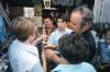 People on a bridge overlooking a river