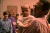 Man with dark hair and glasses holding baby