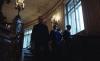 Boys in dark sweaters and collared shirts touring a building in Austria