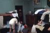 Boys and adults having a meal in the dining hall of Albemarle mansion