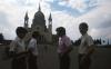 3 boys in white button up shirts in front of the Basilica Don Bosco