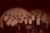 Boys, wearing Icelandic sweaters, singing in front of a Christmas tree