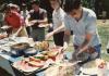 Boys with table of food outdoors