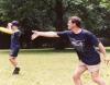Boys playing frisbee