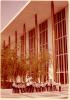 Boys, wearing blue turtlenecks, standing outside of the J F Kennedy Center for the Performing Arts