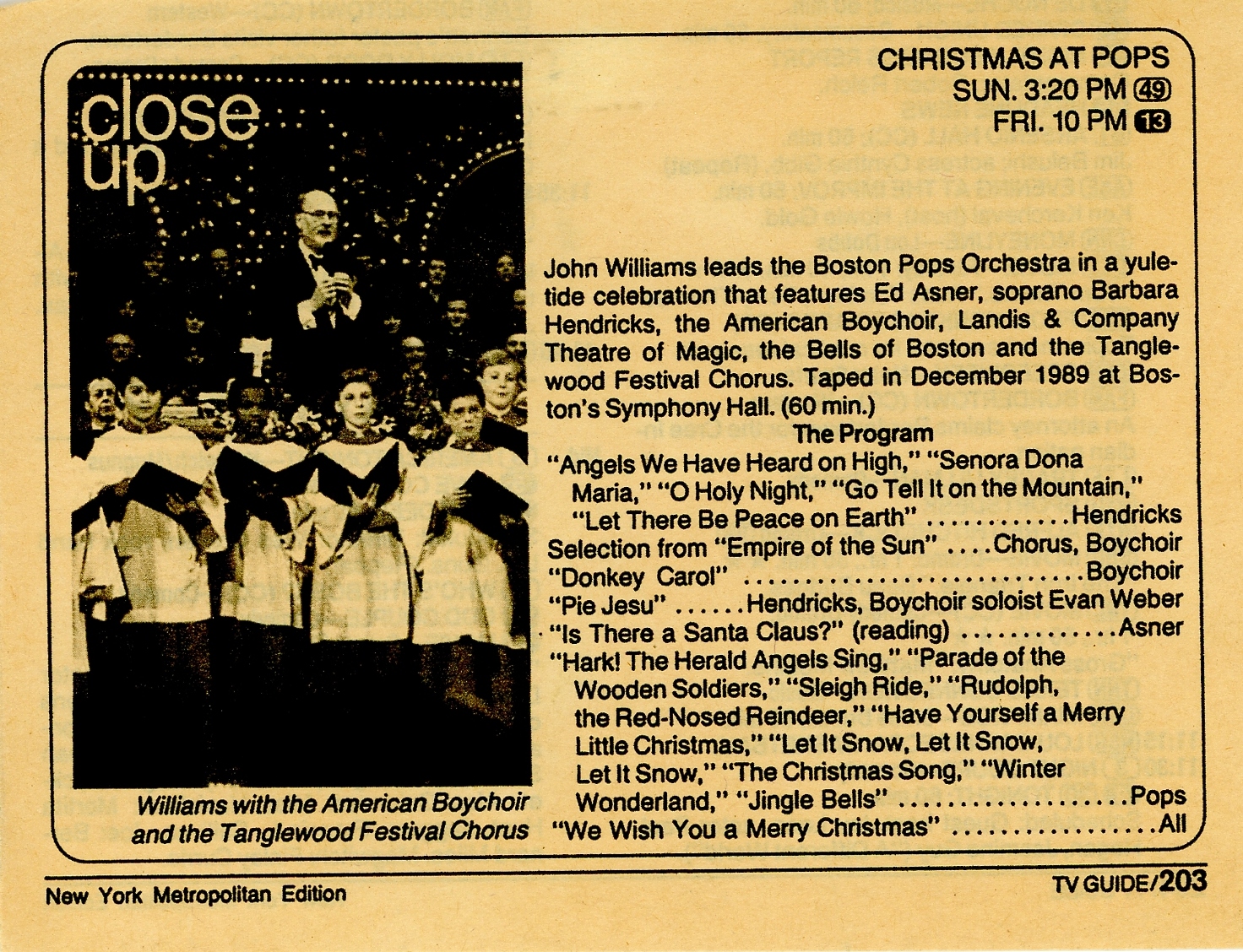 "Christmas at Pops" clipping from TV Guide magazine