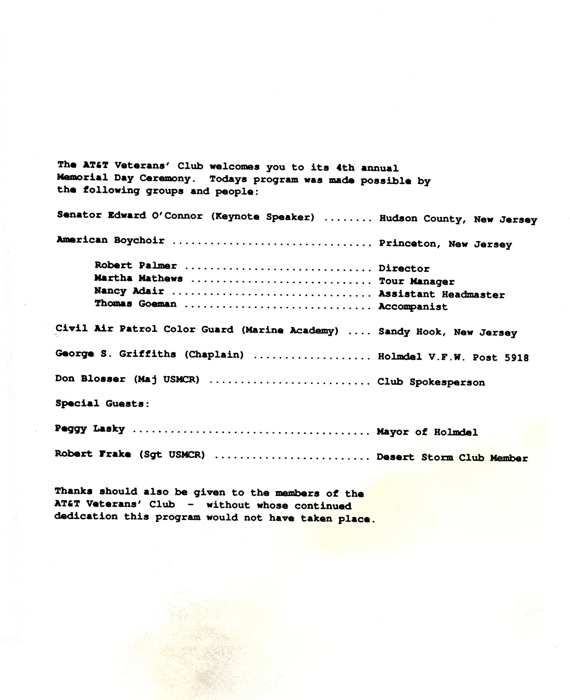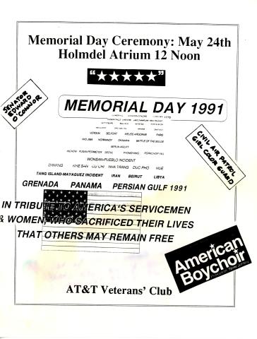AT&T Veterans' Club Memorial Day Ceremony - program, flyer and schedule