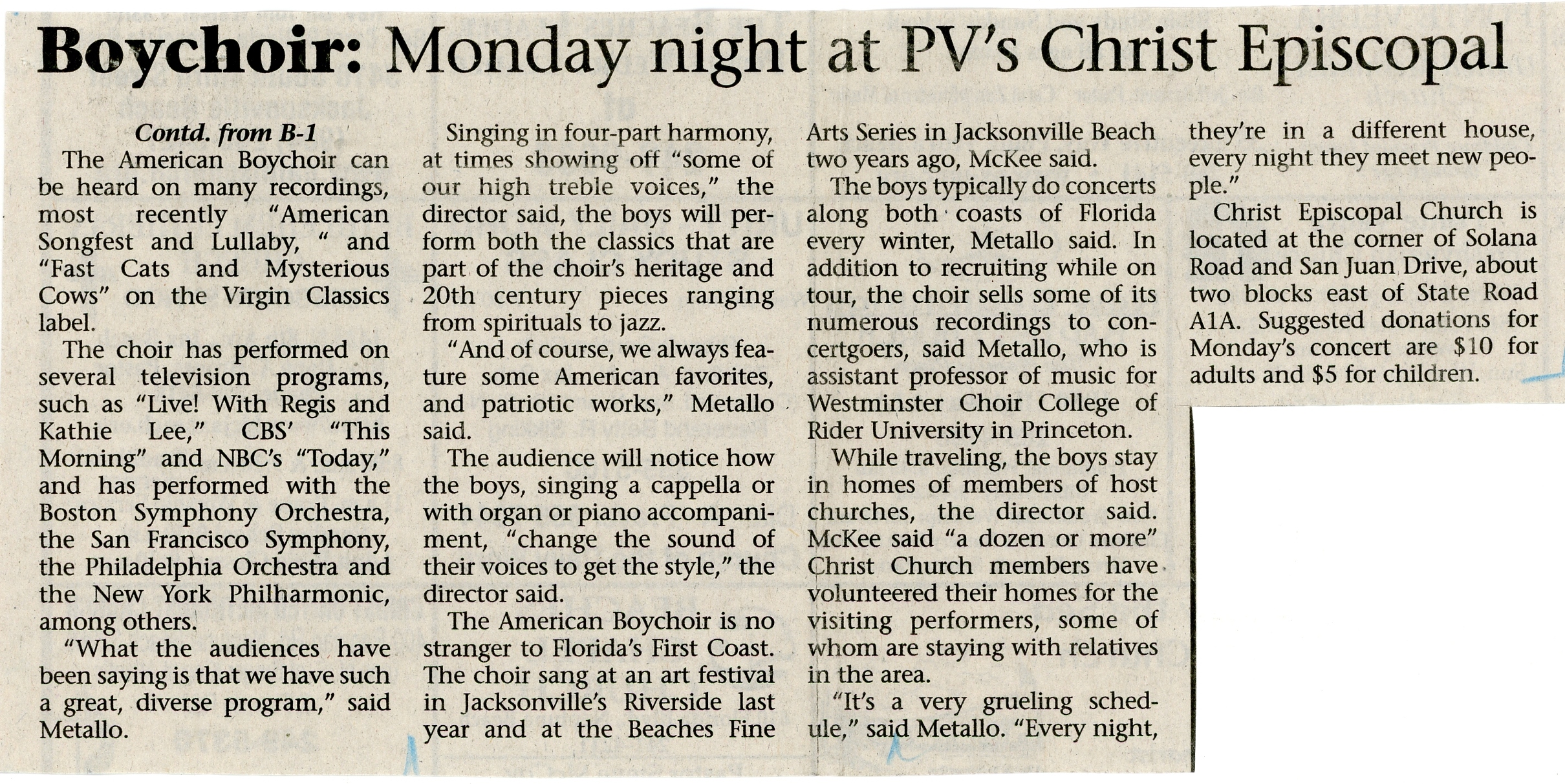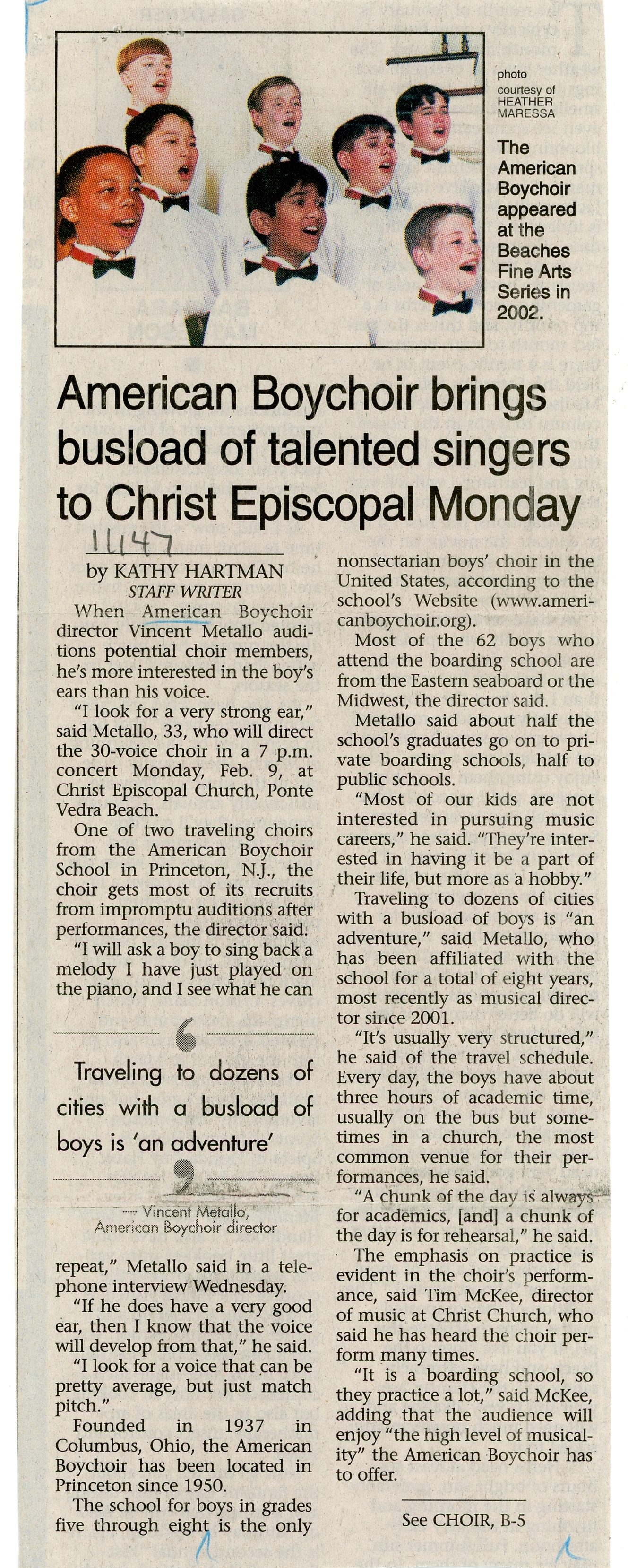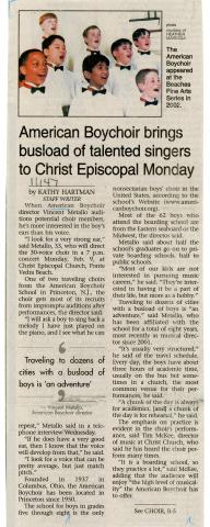 American Boychoir brings busload of talented singers to Christ Episcopal Monday